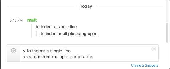 Наконец, еще одно важное замечание по форматированию: вы можете создавать блочные кавычки, используя>. Используйте больше для отступа нескольких абзацев, как показано на следующем снимке экрана.