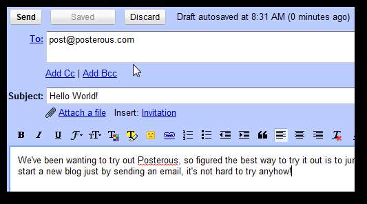 Posterous упрощает создание нового блога. Просто откройте свое любимое почтовое приложение и создайте новое письмо для пост@постэрус.ком.