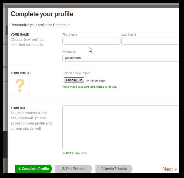 Теперь вы можете добавить свое имя, изображение и биографию, чтобы персонализировать свой профиль в Posterous, если хотите.