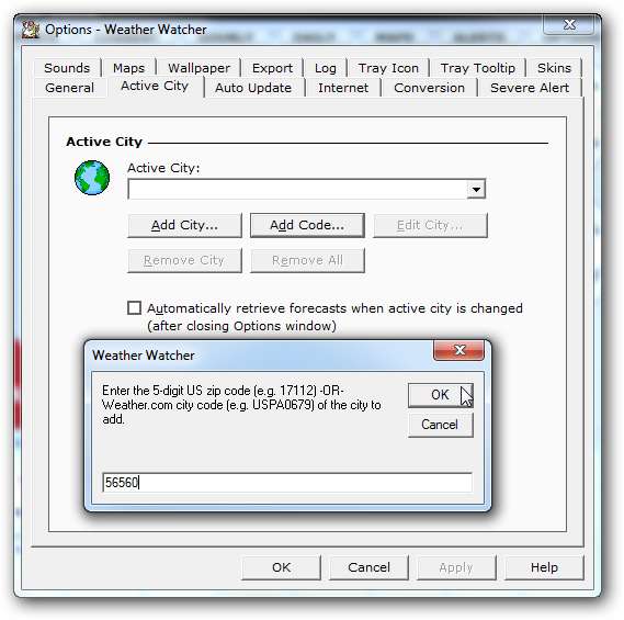 Главное, что мы сразу нашли, - это место для начала получения текущих условий, которое находится на вкладке «Активный город». Здесь вы можете указать места, которые вы хотите отслеживать, по названию города или по почтовому индексу.