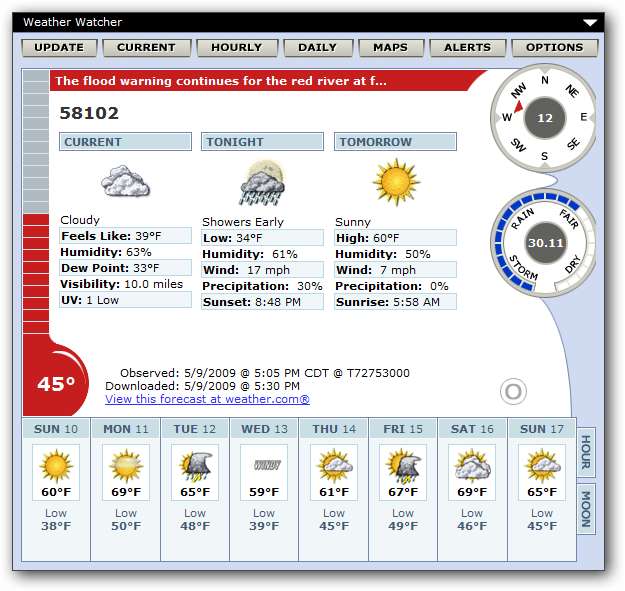 Если вы «Weathergeek» или просто компьютерщик, который хочет знать, светит ли солнце за пределами вашего подземелья, Weather Watcher - отличное бесплатное приложение. Weather Watcher работает с версиями Windows от 98 до Windows 7.
