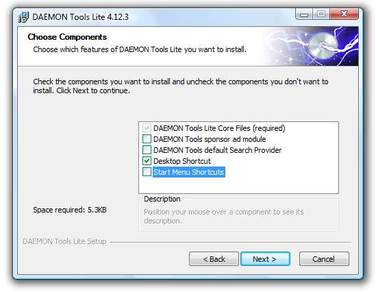 При первой установке Daemon Tools Lite убедитесь, что вы избегаете установки любого типа Crap-Ware, который изменит вашу домашнюю страницу или предоставит вам какую-то бесполезную панель инструментов.