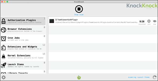 Еще один полезный инструмент для обнаружения вредоносных программ - это Тук-тук от Объективное видение . KnockKnock нацелен не на вредоносное ПО, а на постоянно установленное программное обеспечение. Поскольку вредоносное ПО часто использует агрессивную тактику, чтобы оставаться установленным на компьютере, KnockKnock находит и анализирует эти процессы.