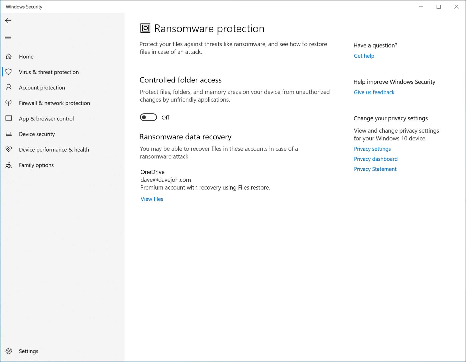 В сочетании с разумными мерами предосторожности, такими как отказ от перехода по ссылкам, которым вы не доверяете, это стандартная компьютерная гигиена. Есть также несколько простых способов добавить на свой компьютер защиту от программ-вымогателей, не устанавливая еще одну программу безопасности. Ваш существующий антивирусный пакет может уже предложить некоторую защиту. Например, если вы используете Защитник Windows, Антивирус Windows 10 по умолчанию , он имеет встроенную защиту от программ-вымогателей, но по умолчанию она отключена.