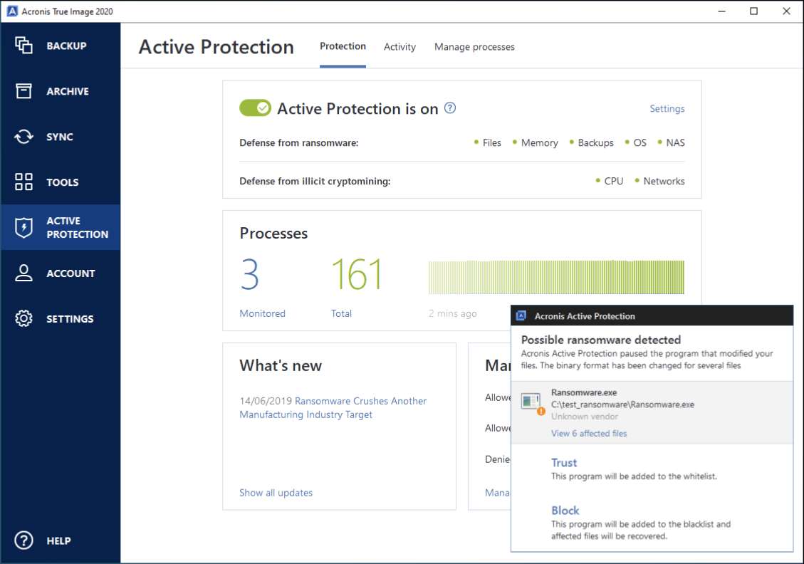 Напротив, большинство автономных пакетов программ-вымогателей, таких как Защита от программ-вымогателей Acronis , Check Point ZoneAlarm Защита от программ-вымогателей , а также Бета-версия Malwarebytes Anti-Ransomware , обнаруживать вредоносное ПО по его поведению. Эти программы отслеживают активность приложений и карантинные процессы, которые совершают подозрительные действия, например генерируют ключ шифрования или запускают шифрование файлов. Это делает эти программы значительно более эффективными при остановке программ-вымогателей, будь то известный штамм, совершенно новая угроза или гибридное (как вирус, так и программа-вымогатель). И да, это новое повод для беспокойства.
