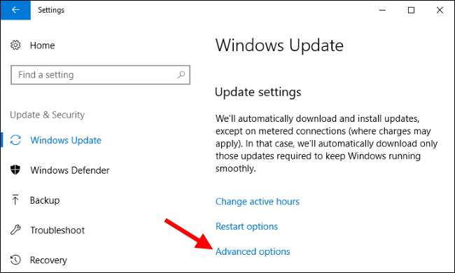 Чтобы отложить обновления в других выпусках, перейдите в Настройки> Обновление и безопасность> Центр обновления Windows> Дополнительные параметры.