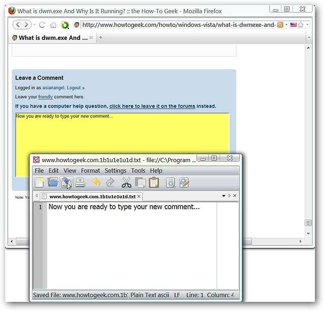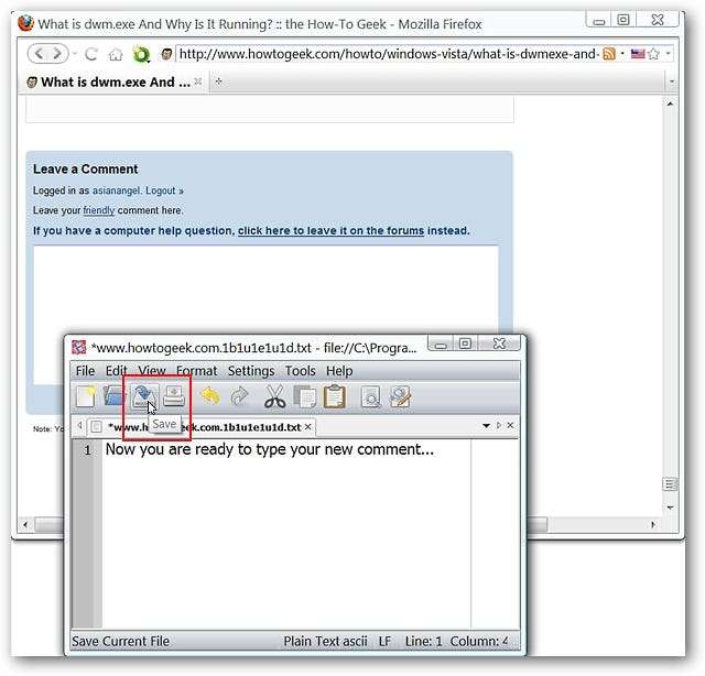 После того, как ваш любимый текстовый редактор был открыт и вы закончили вводить текст, как вы поместите текст в область комментариев? Просто нажмите соответствующую кнопку «Сохранить» в текстовом редакторе, чтобы передать текст.
