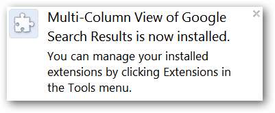 Как и в случае с обычными расширениями, вы увидите сообщение после установки в правом верхнем углу.
