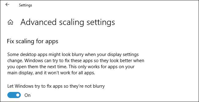 Windows 10 все еще пытается получить старые приложения хорошо смотрится на дисплеях с высоким разрешением , но есть новый параметр «Исправить масштабирование для приложений» в разделе «Настройки»> «Система»> «Дисплей»> «Расширенное масштабирование». Когда вы его включите, Windows попытается автоматически настроить приложения, чтобы они не выглядели размытыми. Даже если этот параметр не включен, Windows будет отображать сообщение «Исправить приложения, которые выглядят размытыми?» всплывающее окно, если оно обнаруживает, что на вашем экране могут быть размытые приложения.