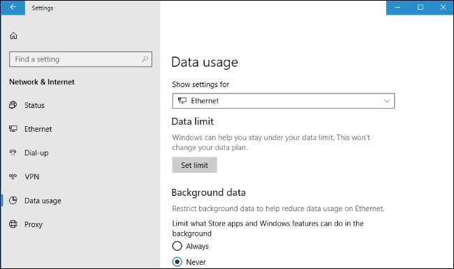 - Использование данных для Wi-Fi и Ethernet : Экран «Настройки»> «Сеть и Интернет»> «Использование данных» теперь позволяет вам устанавливать лимиты данных, применять фоновые ограничения данных и просматривать использование данных в соединениях Wi-Fi и проводной сети Ethernet в дополнение к соединениям сотовой связи. Вы можете щелкнуть правой кнопкой мыши вкладку «Использование данных» на экране настроек и выбрать «Прикрепить к началу», чтобы увидеть использование данных в виде живой плитки в меню «Пуск».