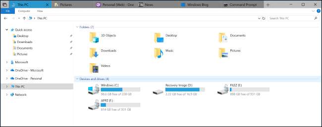 Эта функция будет предоставлять вкладки в каждом окне Windows 10. Вы можете нажать кнопку «+» в строке заголовка окна, чтобы открыть новую вкладку. Эти вкладки могут быть либо «вкладками приложений», которые содержат универсальные приложения Windows 10, либо «веб-вкладками», в которых встроена веб-страница Microsoft Edge.