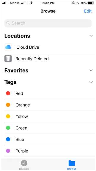 Если вы используете iCloud Drive, вы можете просто нажать iCloud Drive, чтобы просматривать файлы и управлять ими. Если вы используете другие сервисы, вы можете нажать «Изменить» и включить их. Службы будут отображаться здесь, только если вы установили их приложение, и они могут расширять приложение "Файлы". Например, вы можете установить Dropbox , Гугл драйв , Microsoft OneDrive , или Коробка приложения, а затем включите их здесь.