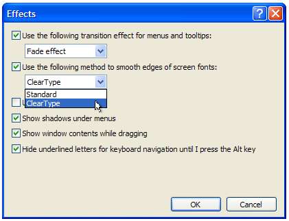 Затем измените раскрывающийся список на ClearType вместо Standard.
