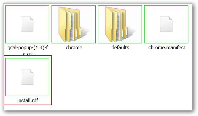 После распаковки вы увидите различные папки и файлы, которые были в «файле xpi» (у нас здесь было четыре файла, но в зависимости от расширения их количество может отличаться). Есть только один файл, на котором вам нужно сосредоточиться… файл «install.rdf».