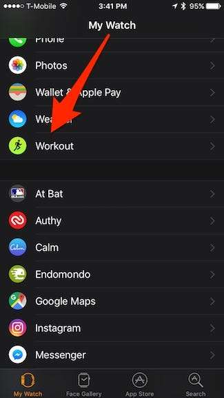 Для этого сначала откройте приложение Watch на iPhone, прокрутите вниз и нажмите «Тренировка».