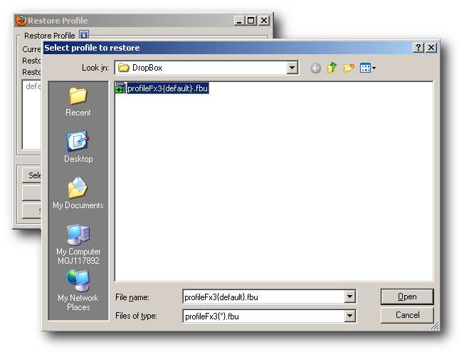 Или выберите свой * .fbi файл, чтобы восстановить свой профиль Firefox.