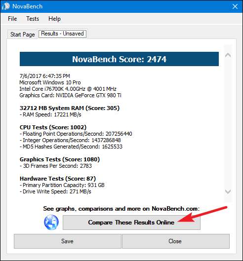 Прокрутите окно немного вниз, и вы можете нажать кнопку «Просмотр в Интернете», чтобы увидеть, как ваши результаты складываются в сравнении с другими тестируемыми системами.