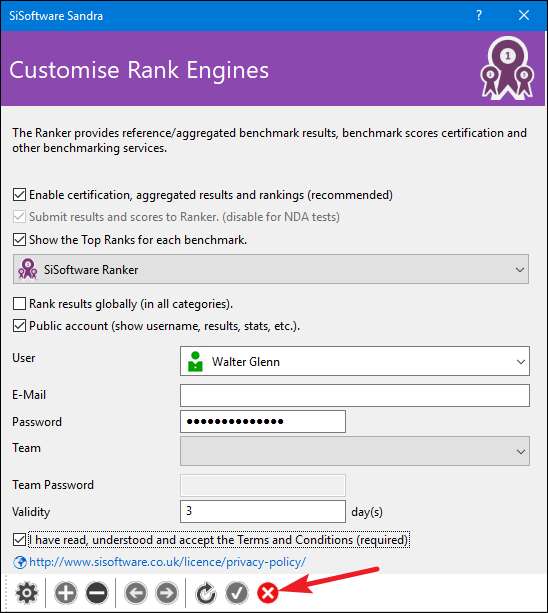 Sisoft также предлагает возможность настраивать свои системы ранжирования, что является бесплатным, но требует регистрации по электронной почте. Если вы предпочитаете не делать этого, вы можете просто нажать кнопку «Отмена», чтобы запустить тесты.