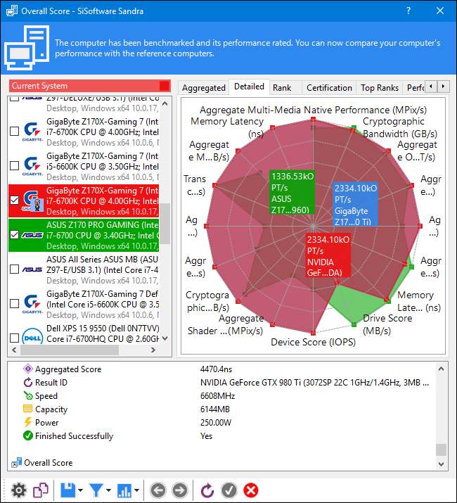 Переключитесь на вкладку «Рейтинг», чтобы увидеть, как ваша система оценивается по другим результатам, представленным пользователями. Нажмите кнопку «Просмотреть SiSoftware Ranker», чтобы просмотреть подробную информацию о вашей системе и системах других пользователей на веб-сайте Sisoft.