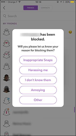 Блокировка кого-либо в Snapchat: