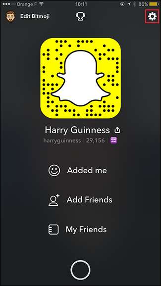 Чтобы разблокировать кого-либо в Snapchat, проведите вниз по экрану Snap и коснитесь значка шестеренки.