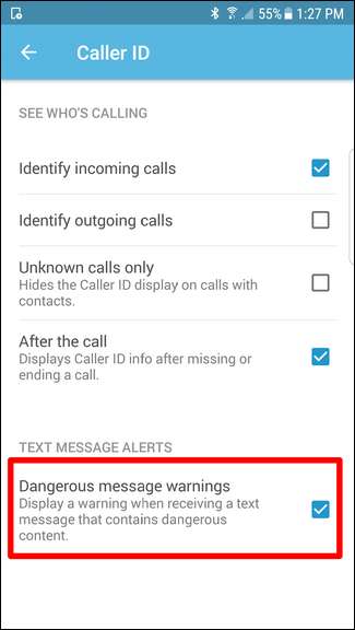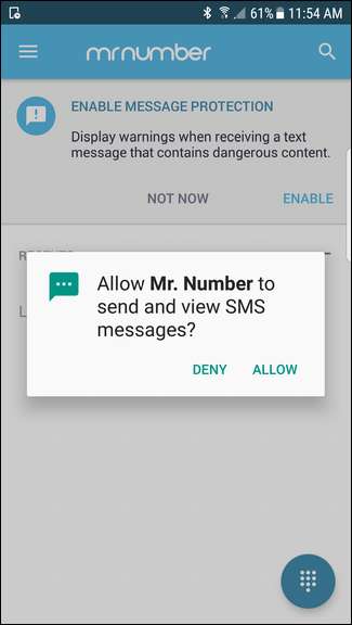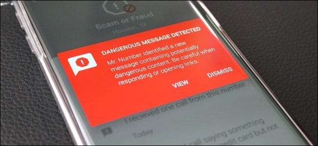 Mr. Number также предлагает SMS-уведомления о спаме. Он не может автоматически блокировать SMS-спам из-за ограничений Android (о которых мы поговорим ниже), но он может уведомлять вас, когда вы получаете опасное сообщение. Чтобы включить эту функцию, вернитесь в «Настройки» и выберите «АОН».