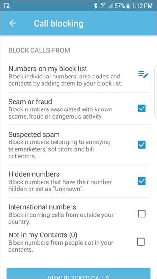Если вы просто хотите заблокировать все телемаркетинговые или спам-звонки, Mr. Number может сделать это автоматически. Он имеет три типа автоматической блокировки: мошенничество / мошенничество, подозрение на спам и скрытые номера. Каждую из этих категорий также можно переключать индивидуально. Он также может блокировать отдельные номера и даже все номера, которых нет в вашем списке контактов. Он становится сумасшедшим.