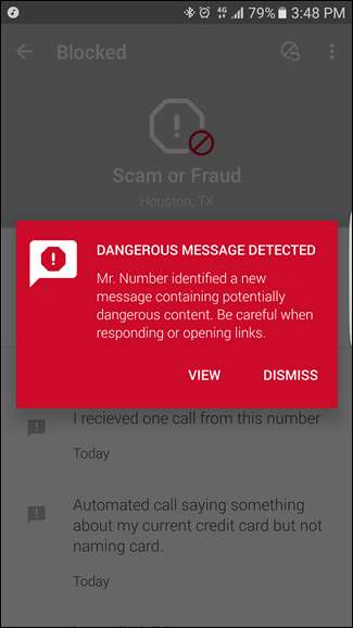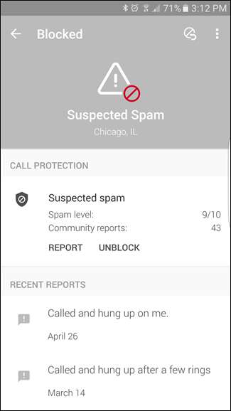Когда кто-то из вашего черного списка пытается позвонить (независимо от того, ввели ли вы номер вручную или это часть функции автоматической блокировки), телефон будет звонить примерно полсекунды или около того, прежде чем мистер Номер сможет сработать. Как только это произойдет однако он отправит вызывающего абонента на голосовую почту и оставит уведомление о том, что он заблокировал номер. Затем вы можете нажать на уведомление, чтобы прочитать дополнительную информацию о номере, включая комментарии, оставленные другими пользователями относительно характера звонка. Аккуратно, правда?