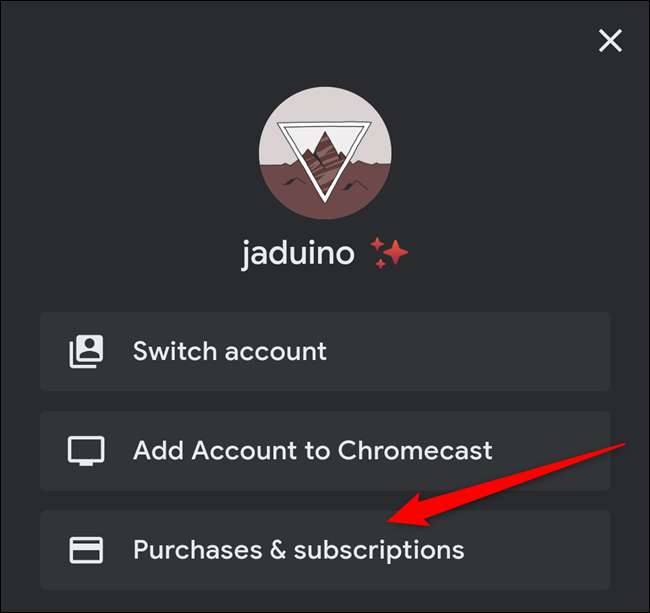 Нажмите кнопку «Покупки и подписки» вверху списка.