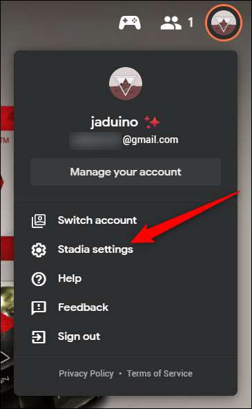 Оттуда выберите во всплывающем меню кнопку «Настройки Stadia».