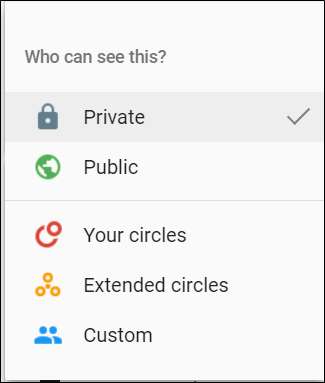 Если вы вообще не пользуетесь Google+, у вас, вероятно, не будет никаких кругов, с которыми можно было бы делиться информацией. В этом случае вы можете сделать это черным по белому - общедоступным или частным - или просто выбрать, с какими контактами Google вы готовы поделиться информацией.