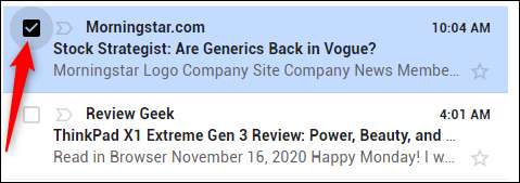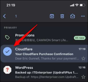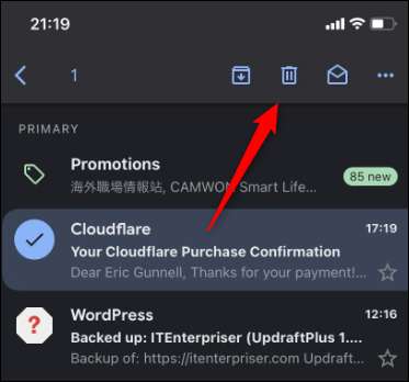 Вы также можете удалить электронные письма в Gmail, используя мобильное приложение для iPhone С артикул , а также Андроид Отказ Для этого откройте приложение и коснитесь круглого значка слева от электронной почты. Появится галочка.