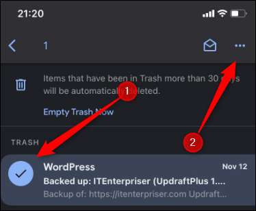 В папке для мусора нажмите на круглый значок слева от электронной почты, а затем нажмите значок трехтот в верхнем правом углу экрана.