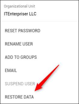 Из списка пользователей выберите пользователь, для которого вы хотите восстановить электронные письма.