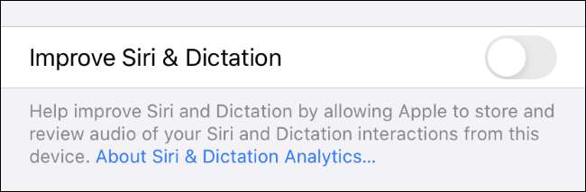 Убедитесь, что опция «Улучшить Siri и диктовку» отключена. Если он включен, ваш iPhone или iPad будет передавать Apple фрагменты вашего голоса.