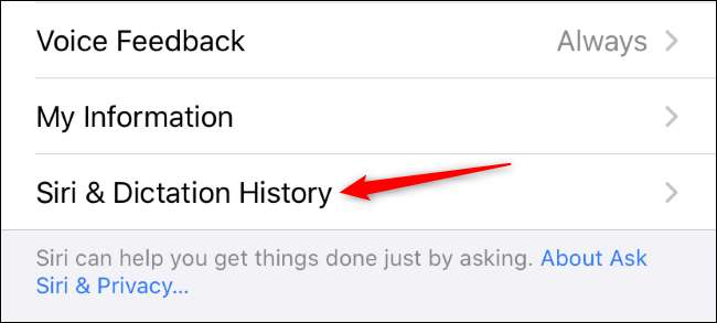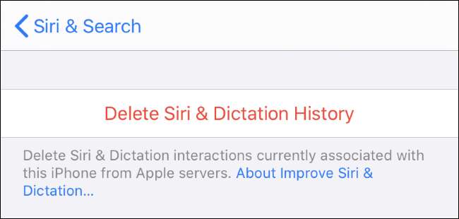 Чтобы удалить историю с серверов Apple, перейдите в «Настройки»> «Siri и поиск»> «История Siri и диктовки».