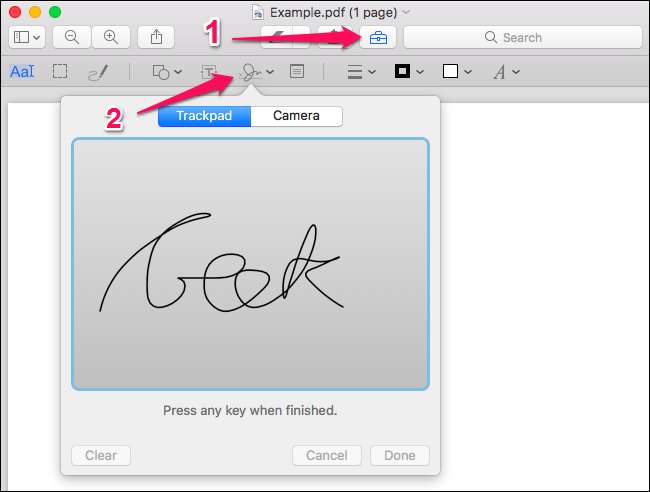 Вам будет предложено создать подпись, проведя пальцем по трекпаду или подписав лист бумаги и отсканировав его с помощью веб-камеры. Захватите свою подпись один раз, и Preview запомнит ее на будущее.