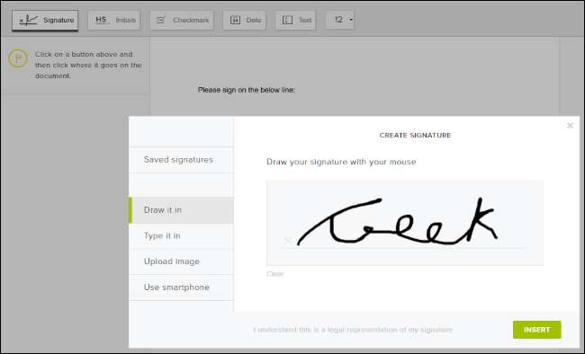 Базовый веб-интерфейс HelloSign позволяет легко загружать PDF-документы и подписывать их, рисуя свою подпись или загружая изображение. Затем вы можете отправить подписанный документ по электронной почте кому-нибудь или загрузить документ и делать с ним все, что захотите.