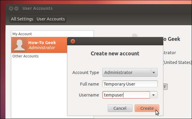 Вам нужно будет зашифровать свой домашний каталог, пока вы не вошли в систему. Это означает, что вам понадобится еще одна учетная запись пользователя с правами администратора (sudo) - вы можете создать ее в окне учетных записей пользователей Ubuntu. Чтобы открыть его, щелкните свое имя на панели и выберите «Учетные записи пользователей».