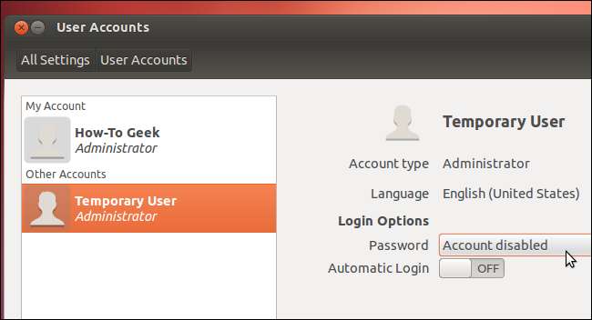 Установите пароль, щелкнув поле пароля. Учетная запись отключена, пока вы не примените пароль.