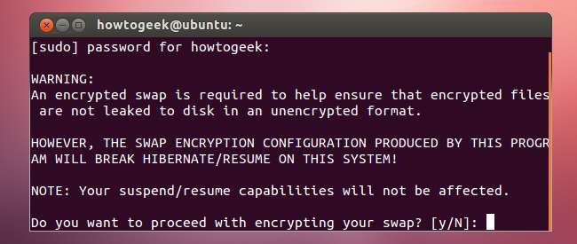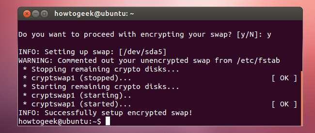Когда вы настраиваете зашифрованный домашний каталог при установке Ubuntu, ваш раздел подкачки также зашифровывается. После настройки шифрования домашнего каталога вы также захотите настроить шифрование подкачки. Для этого выполните в терминале следующую команду: