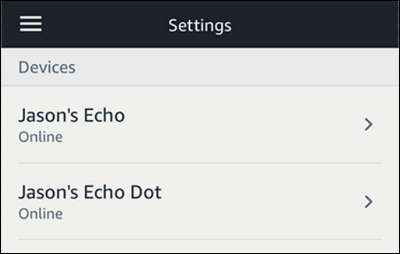 В меню настроек выберите любое из ваших устройств Echo, которые совместимы, например, Echo и Echo Dot, показанные здесь.