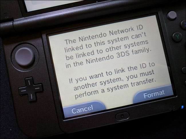 Последний экран должен сообщить вам, что если вы хотите связать свой NNID с новой системой 3DS, вам необходимо выполнить перенос системы. Если вы готовы отформатировать систему, нажмите «Форматировать».
