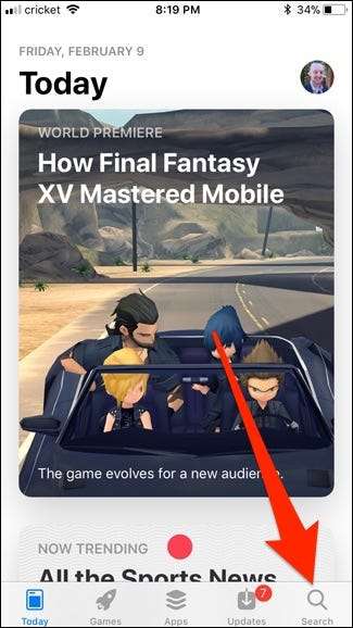 Так как же это исправить? Начните с открытия App Store и коснитесь вкладки «Поиск» в правом нижнем углу экрана.