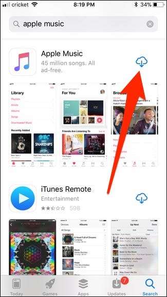 Возможно, вам придется немного прокрутить вниз, но как только вы найдете приложение Apple Music, нажмите кнопку загрузки справа.