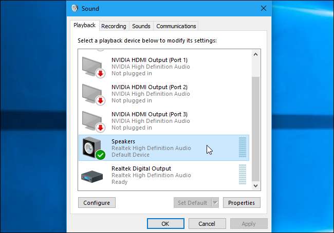 Дважды щелкните устройство воспроизведения по умолчанию, на значке которого есть зеленая галочка.