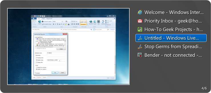 Очевидно, что этот пример - всего лишь странное изменение в последней версии Internet Explorer, а вовсе не ошибка VistaSwitcher, но хорошо знать, как использовать эту функцию, чтобы скрыть любые окна, которые вы не хотите видеть.
