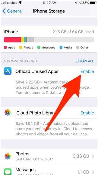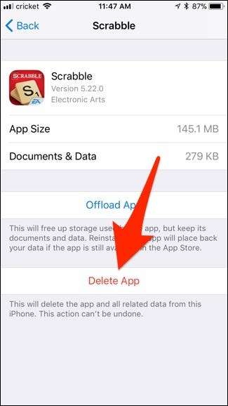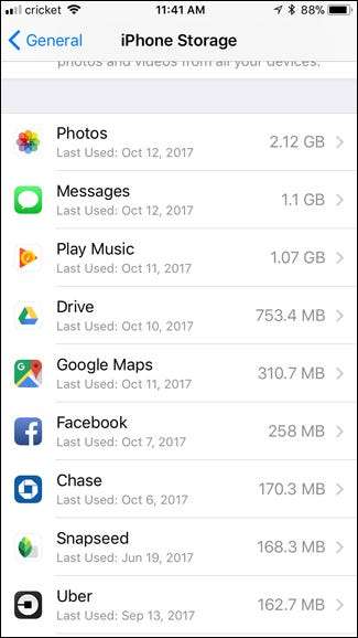 СВЯЗАННЫЕ С: Как освободить место на вашем iPhone или iPad, выгрузив неиспользуемые приложения