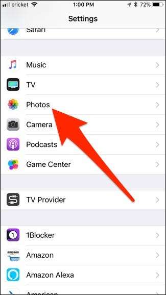 Начните с открытия приложения «Настройки» и нажатия «Фото».