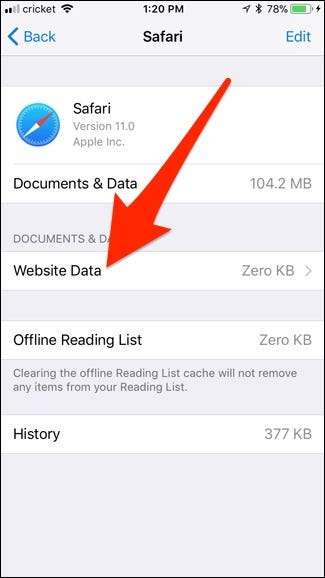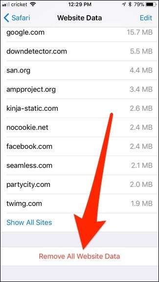 Прокрутите вниз и выберите «Удалить все данные веб-сайтов».